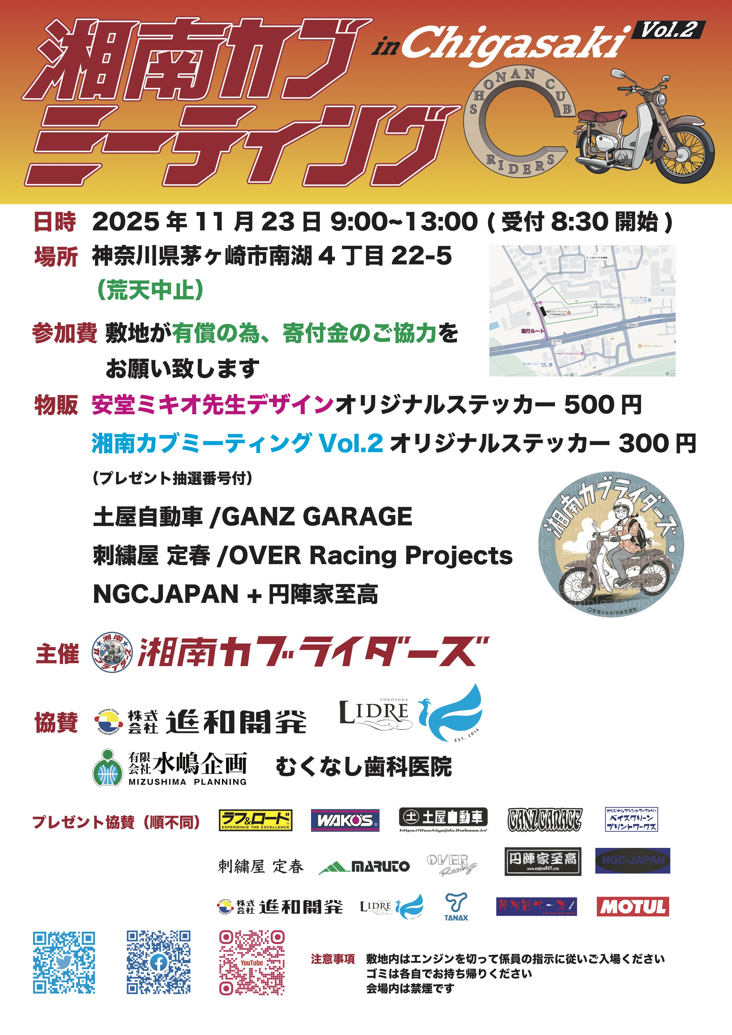11月23日(日) スーパーカブミーティング@茅ヶ崎市、南湖エリア、元県営駐車場にて開催させて頂きます。