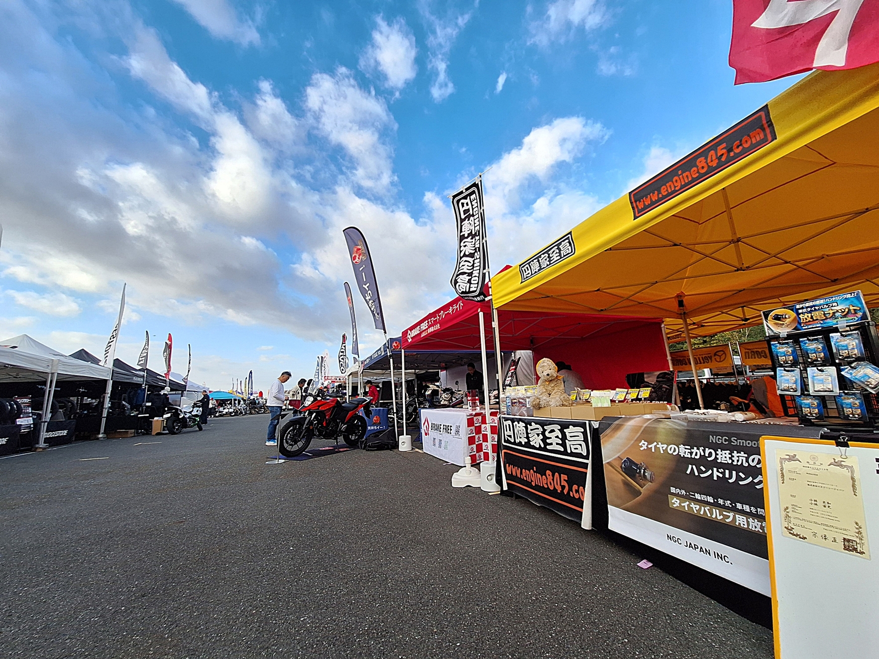 富士山麓は強風の初冬の趣きでした。ですが日が昇ってくるにつれ、ライダーズも続々と集結し始め、1000名様程のご来場だったとの事です。